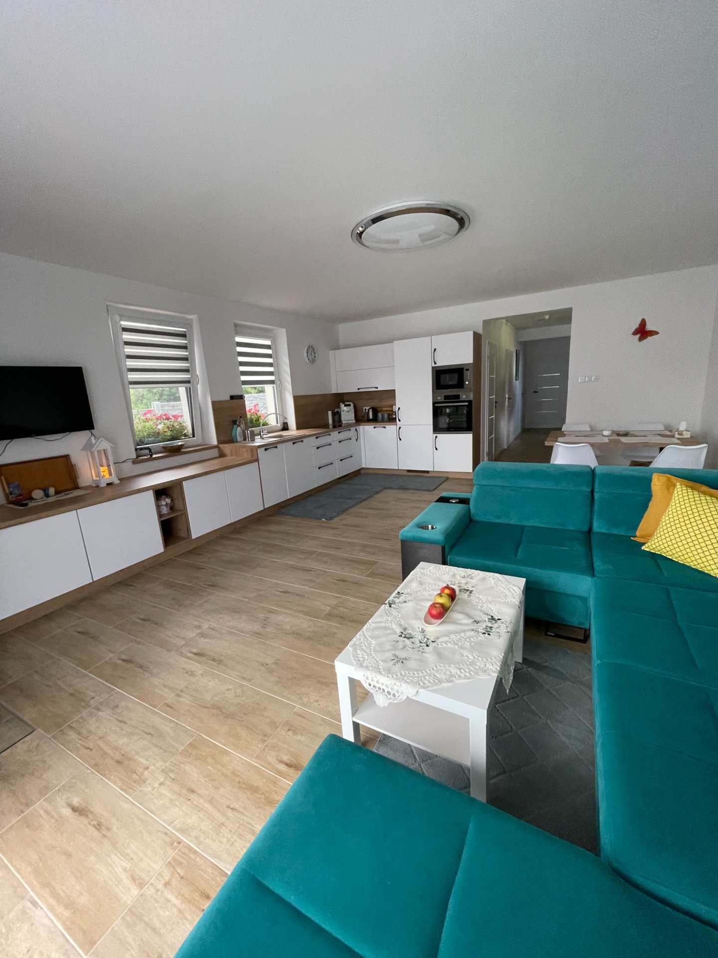 Na prízemí rodinného domu sa nachádza kuchyňa s obývačkou.
